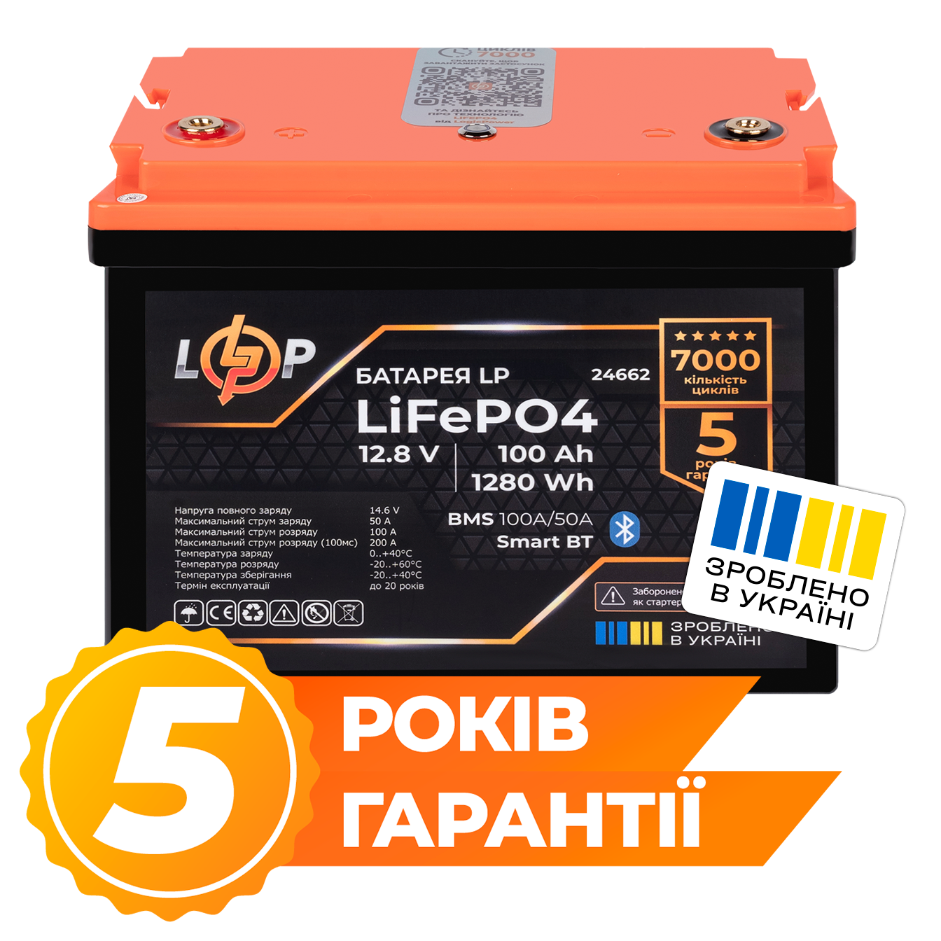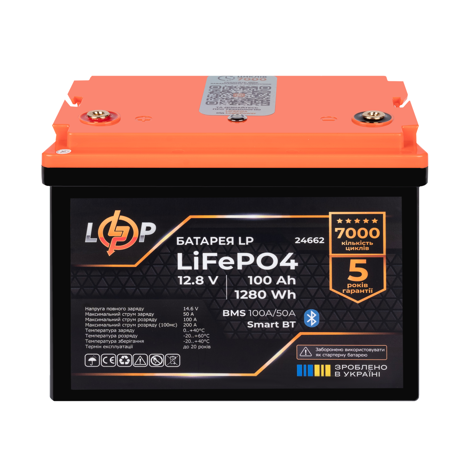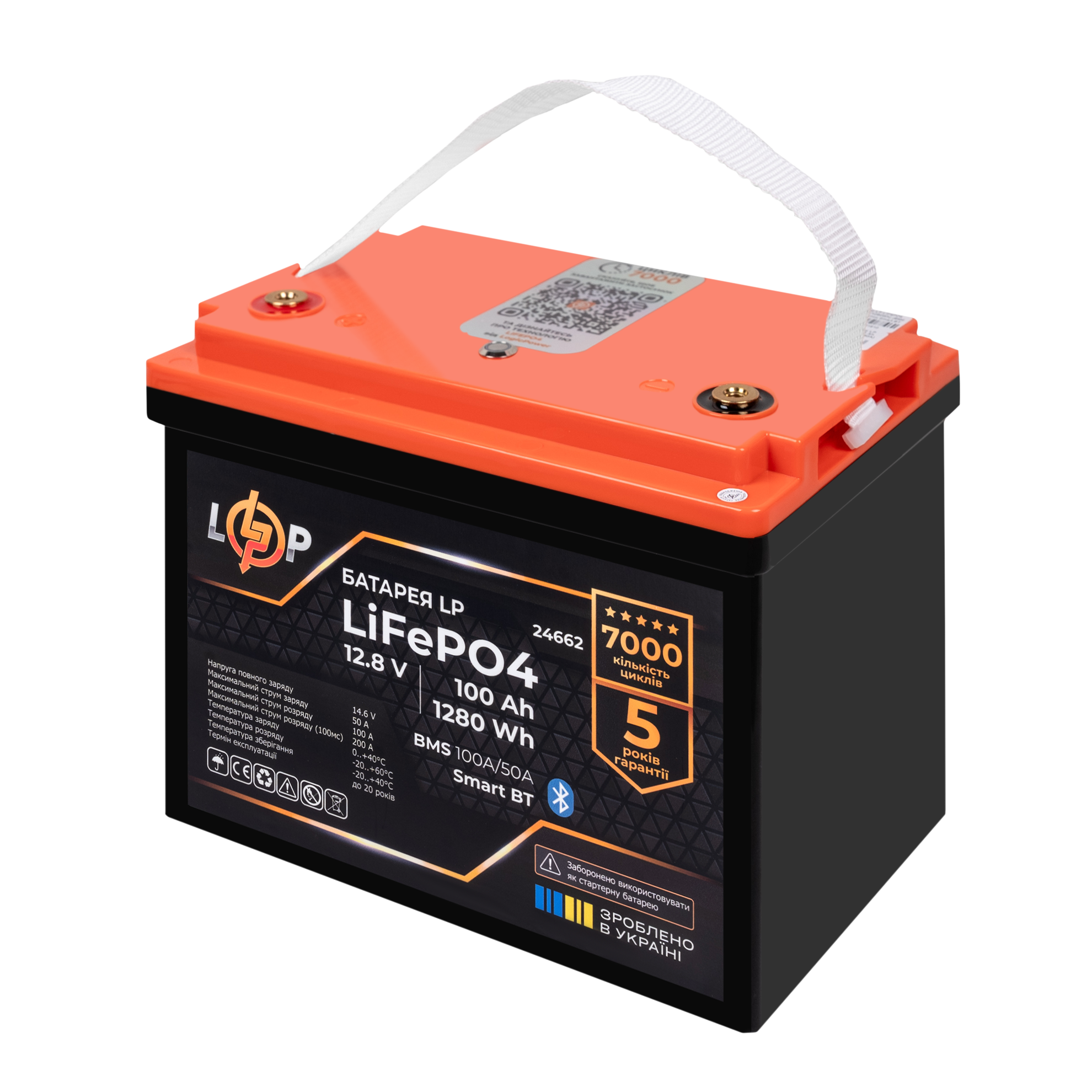 Акумулятор LP LiFePO4 12,8V – 100 Ah (1280Wh) (BMS 100A/50А) пластик Smart BT