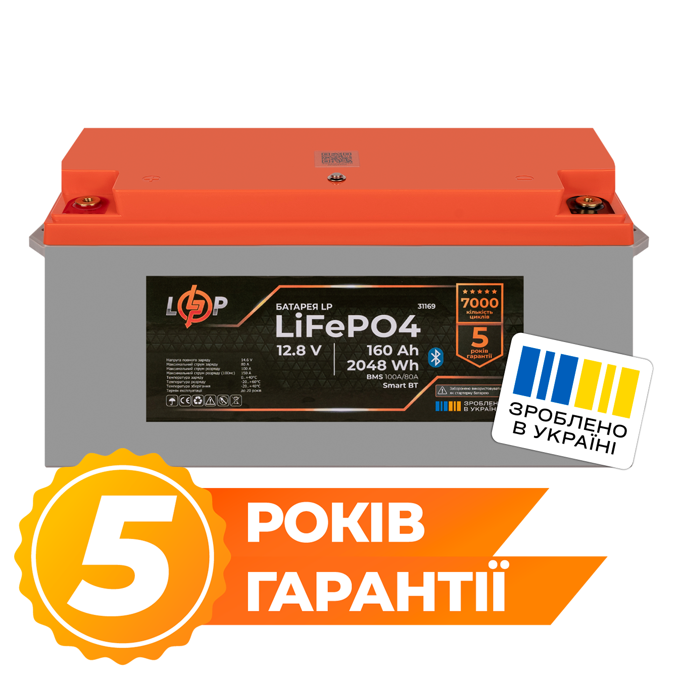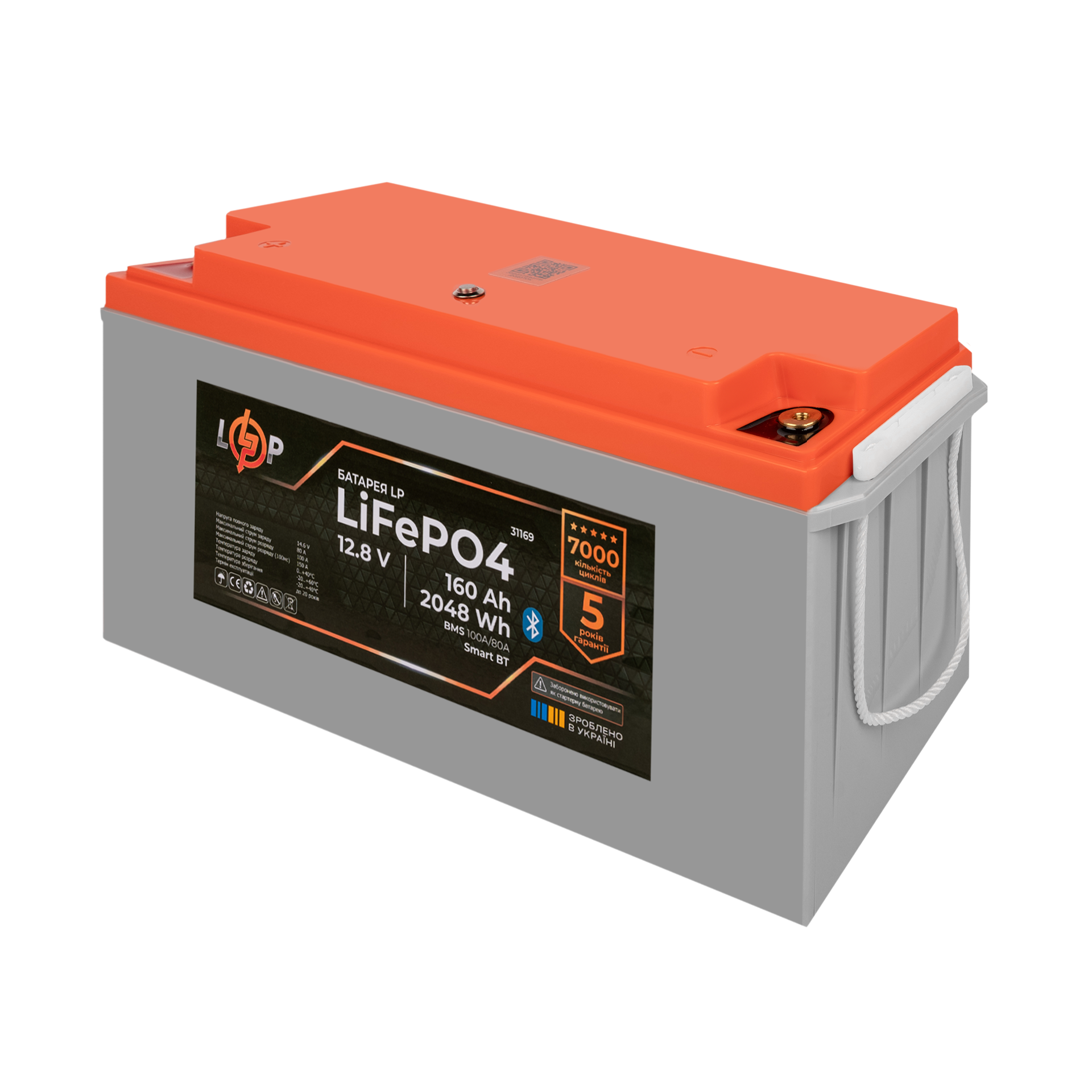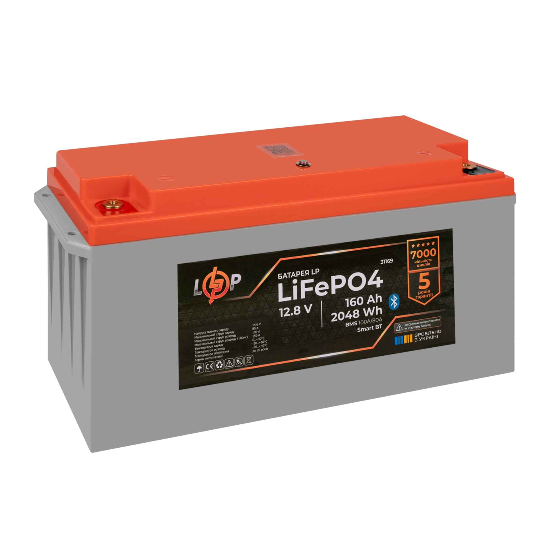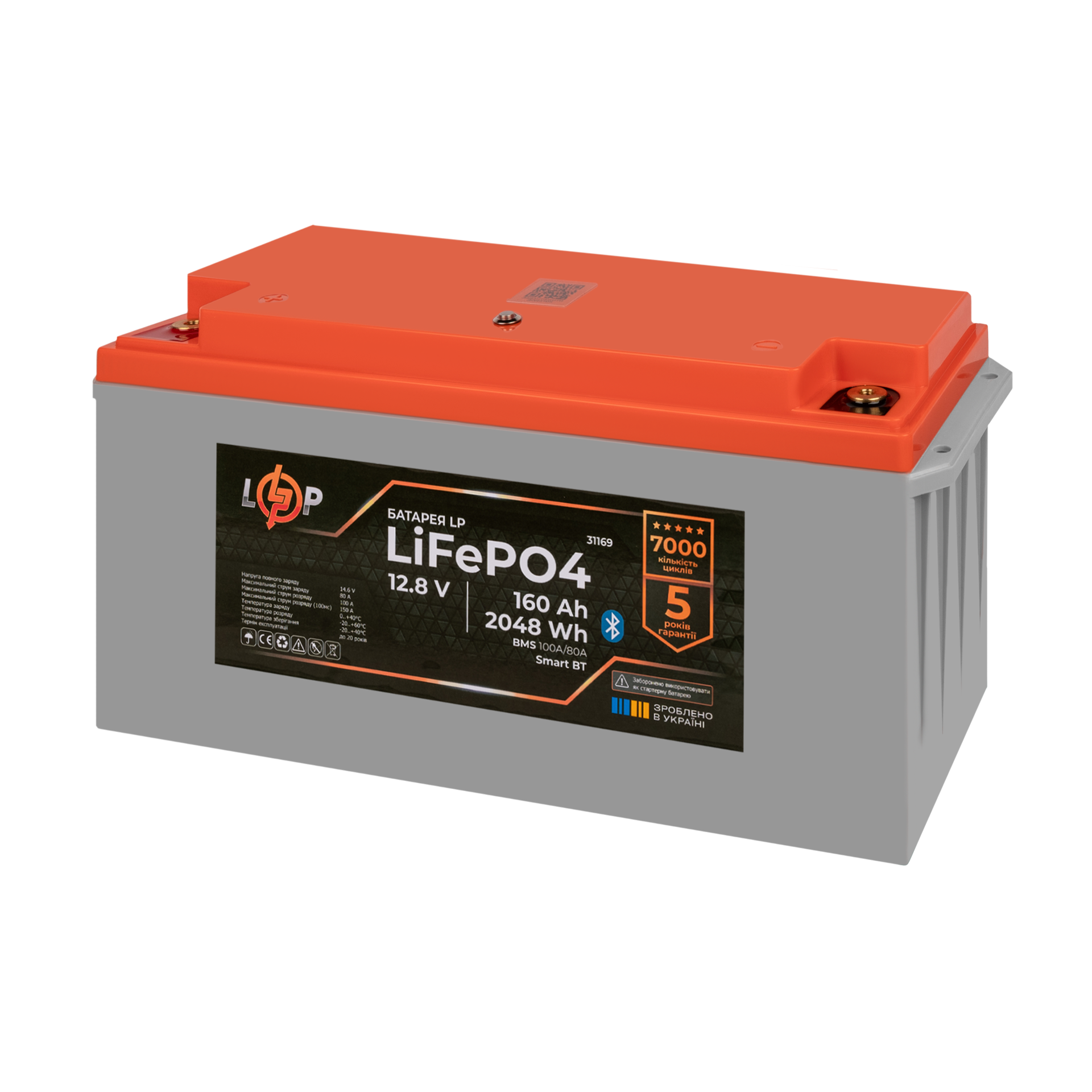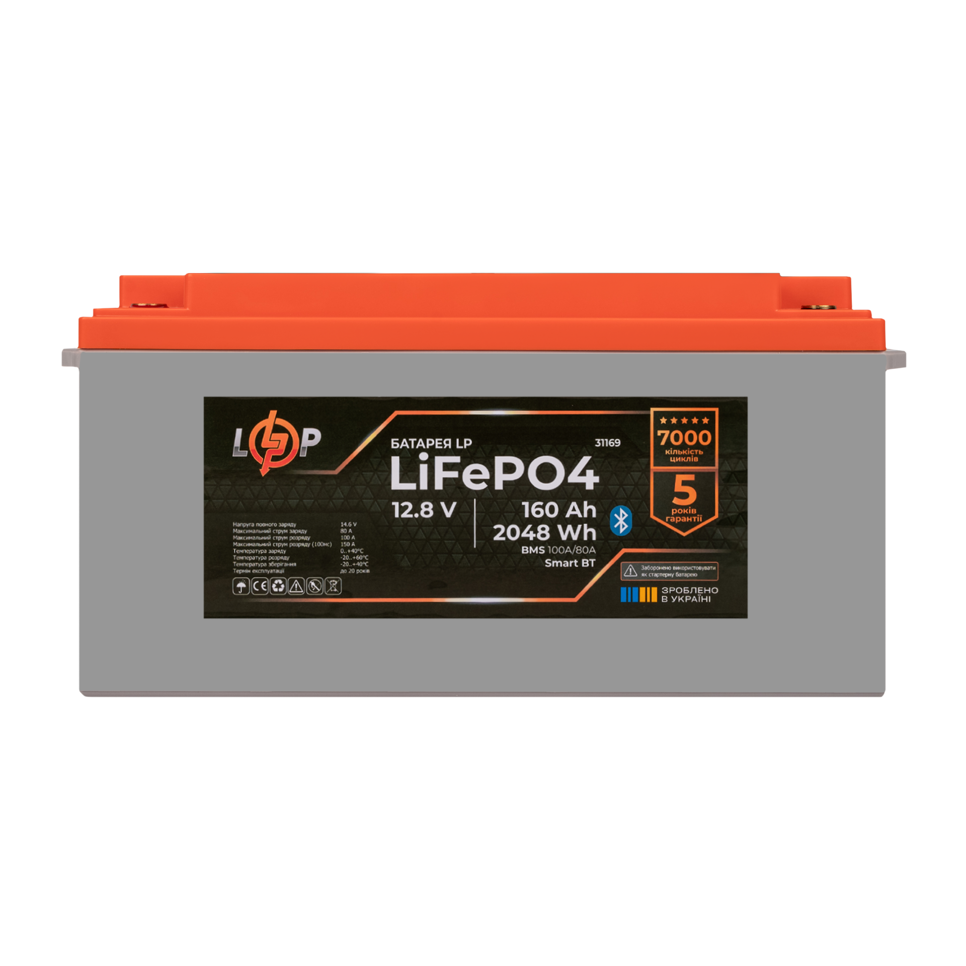 Акумулятор LP LiFePO4 12,8V – 160 Ah (2048Wh) (BMS 100A/80А) пластик Smart BT
