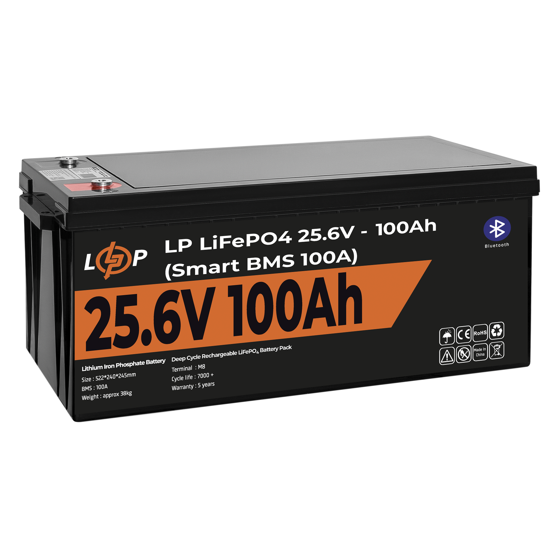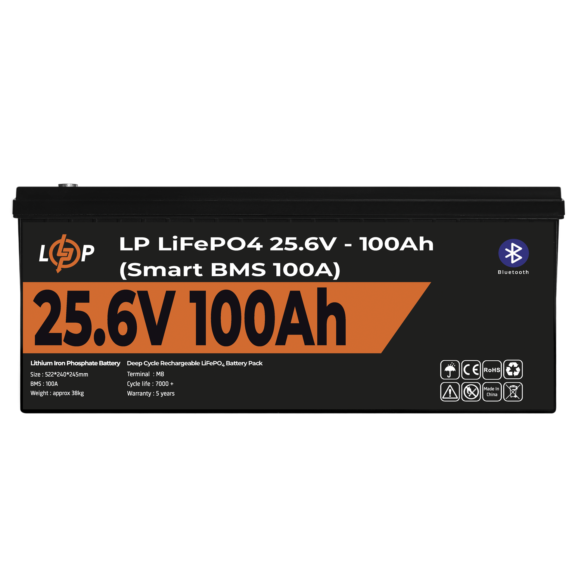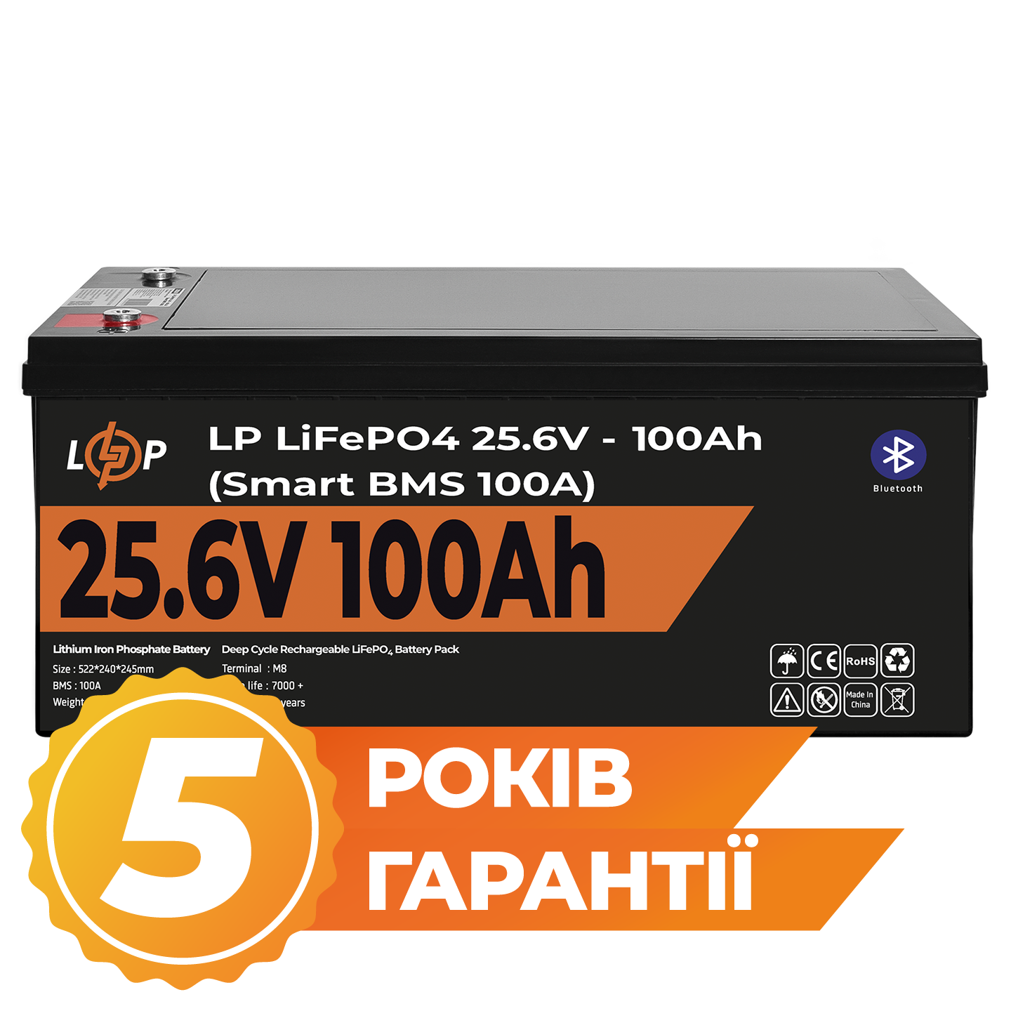 Акумулятор LP LiFePO4 24V (25,6V) – 100 Ah (2560Wh) (Smart BMS 100А) з BT пластик