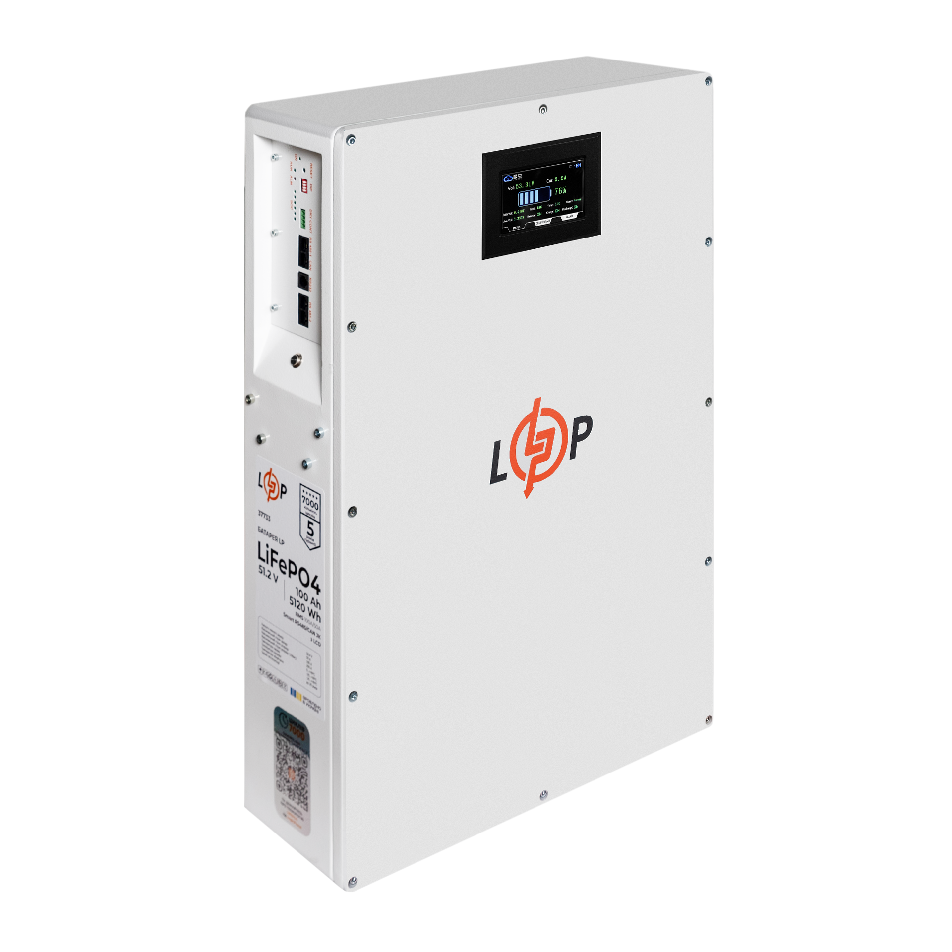 Аккумулятор LP LiFePO4 51,2V – 100 Ah 5120Wh (Smart BMS 100A) с LCD WAB RS485/CAN