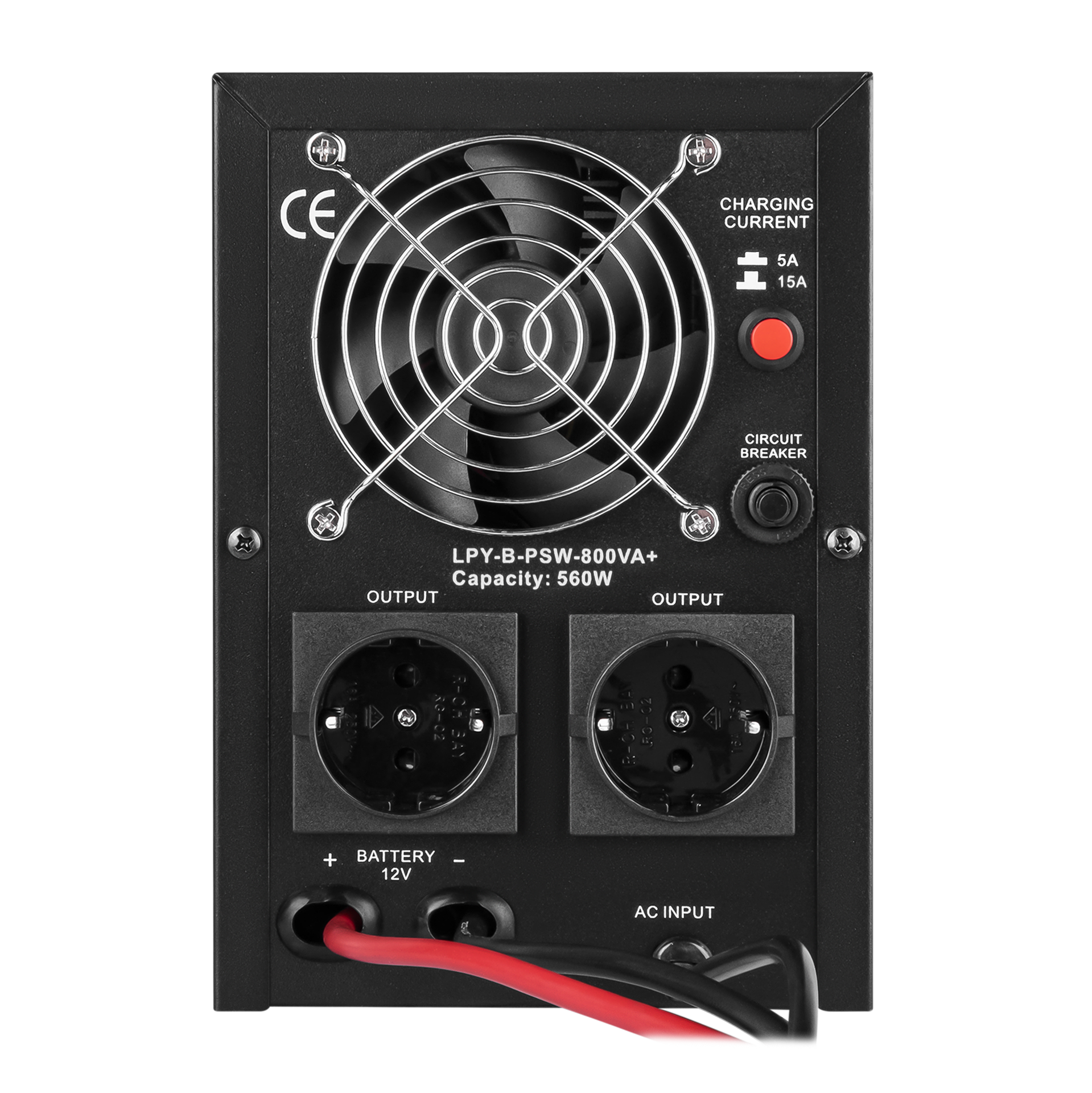 ДБЖ з правильною синусоїдою LPY-B-PSW-800VA+ (560Вт) 5A/15A має потужність 800/560 Вт.