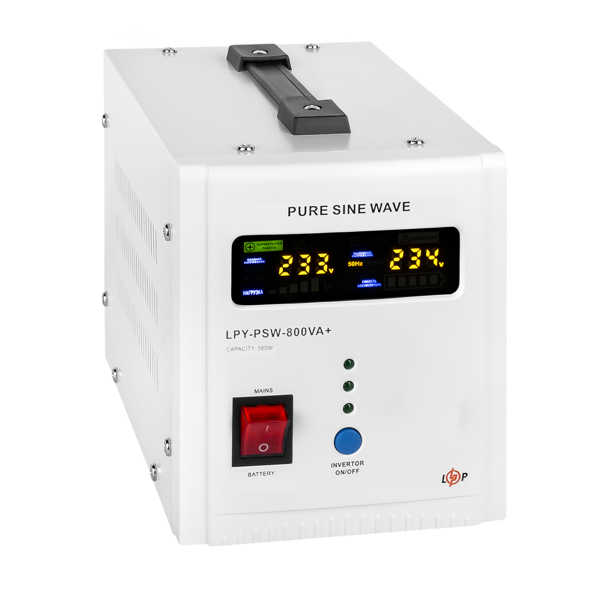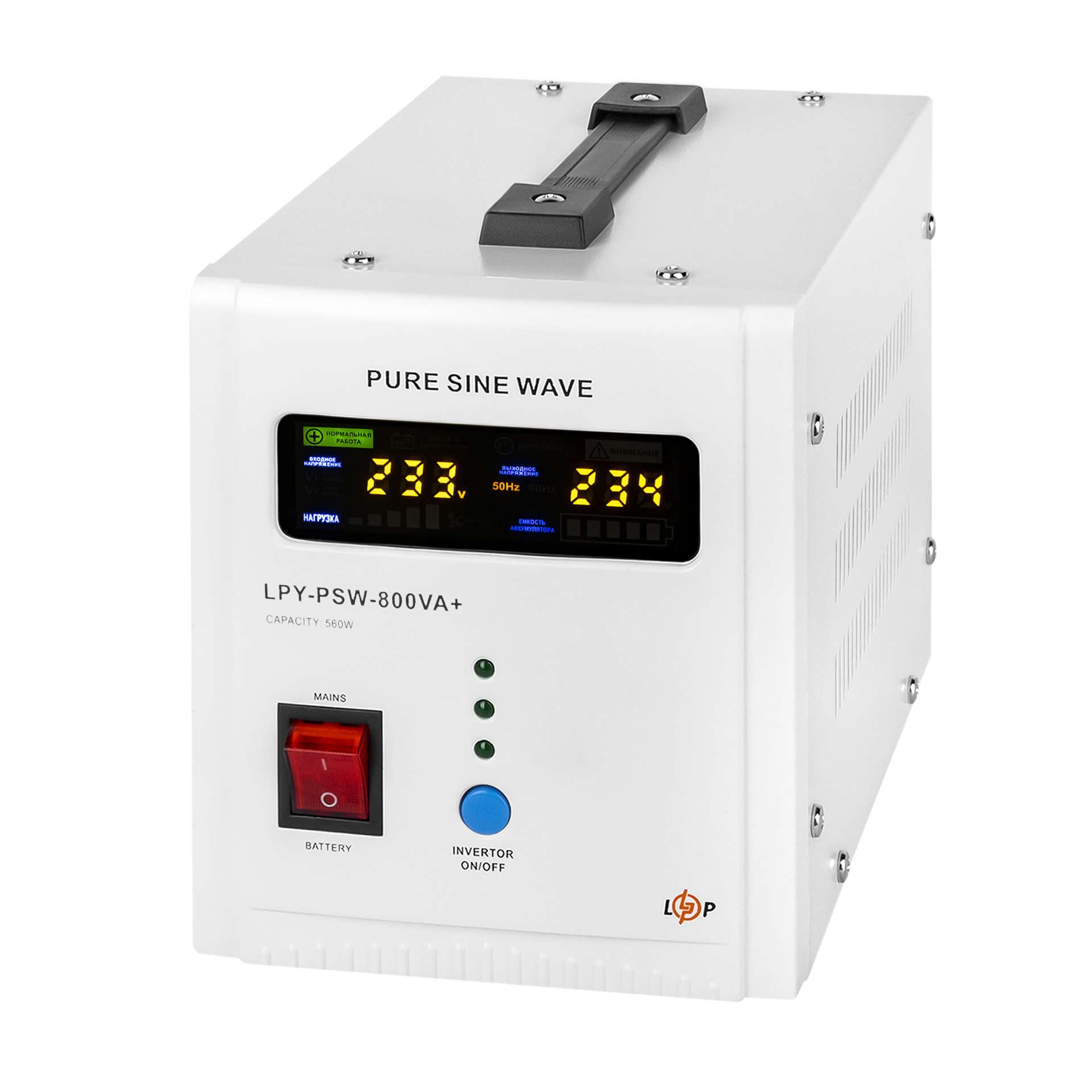 ДБЖ з правильною синусоїдою LPY-PSW-800VA+ (560Вт) 5A/15A