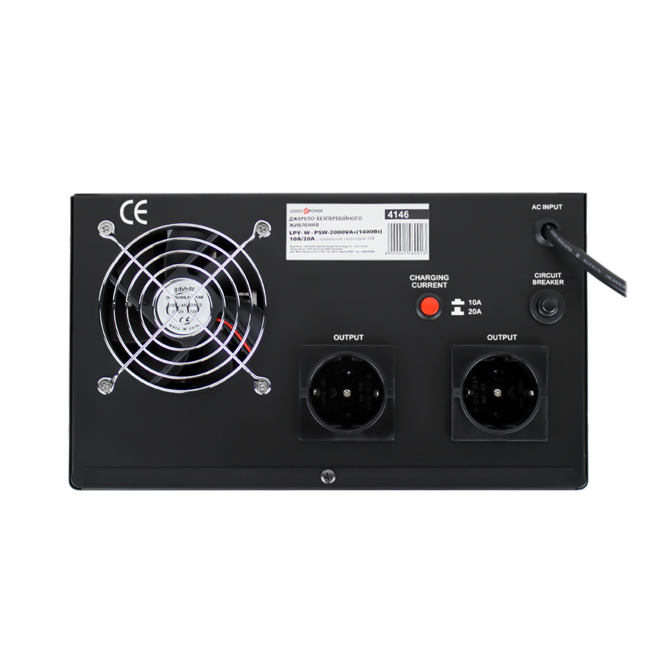 ДБЖ з правильною синусоїдою LPY-W-PSW-2000VA+ (1400Вт) 10A/20A має потужність 2000/1400 Вт.