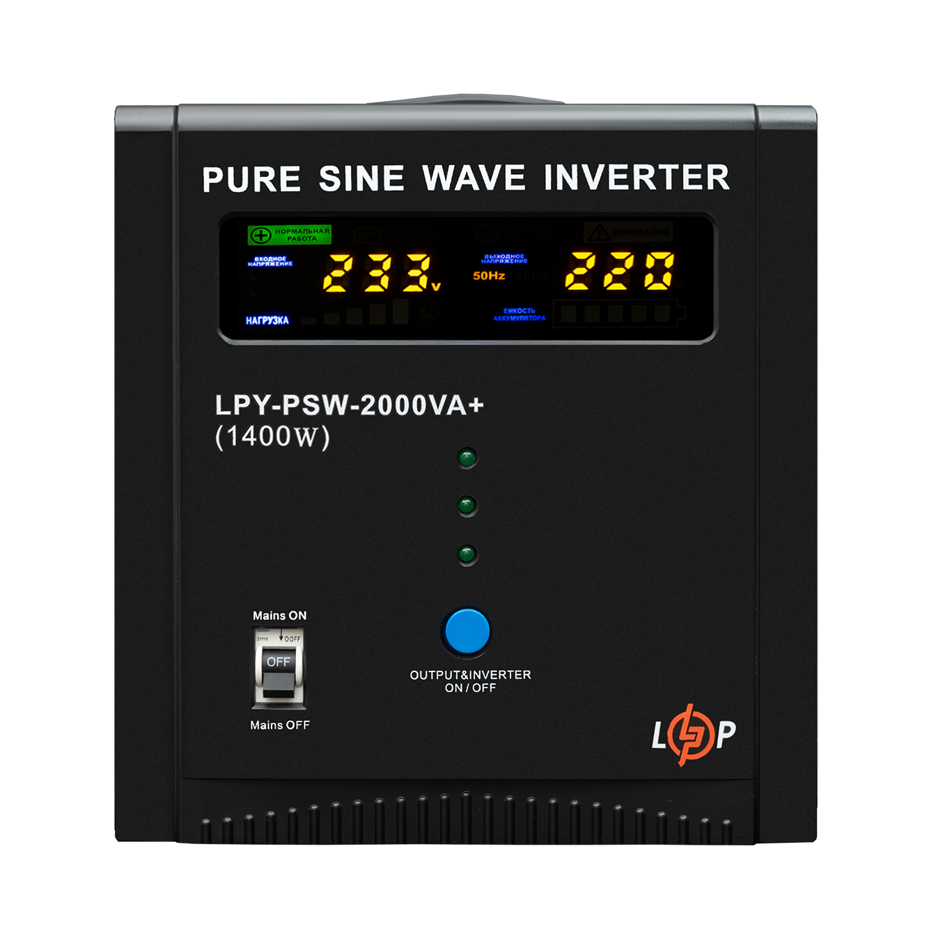 ДБЖ з правильною синусоїдою LPY-PSW-2000VA+ (1400Вт) 10A/20A має потужність 2000/1400 Вт.