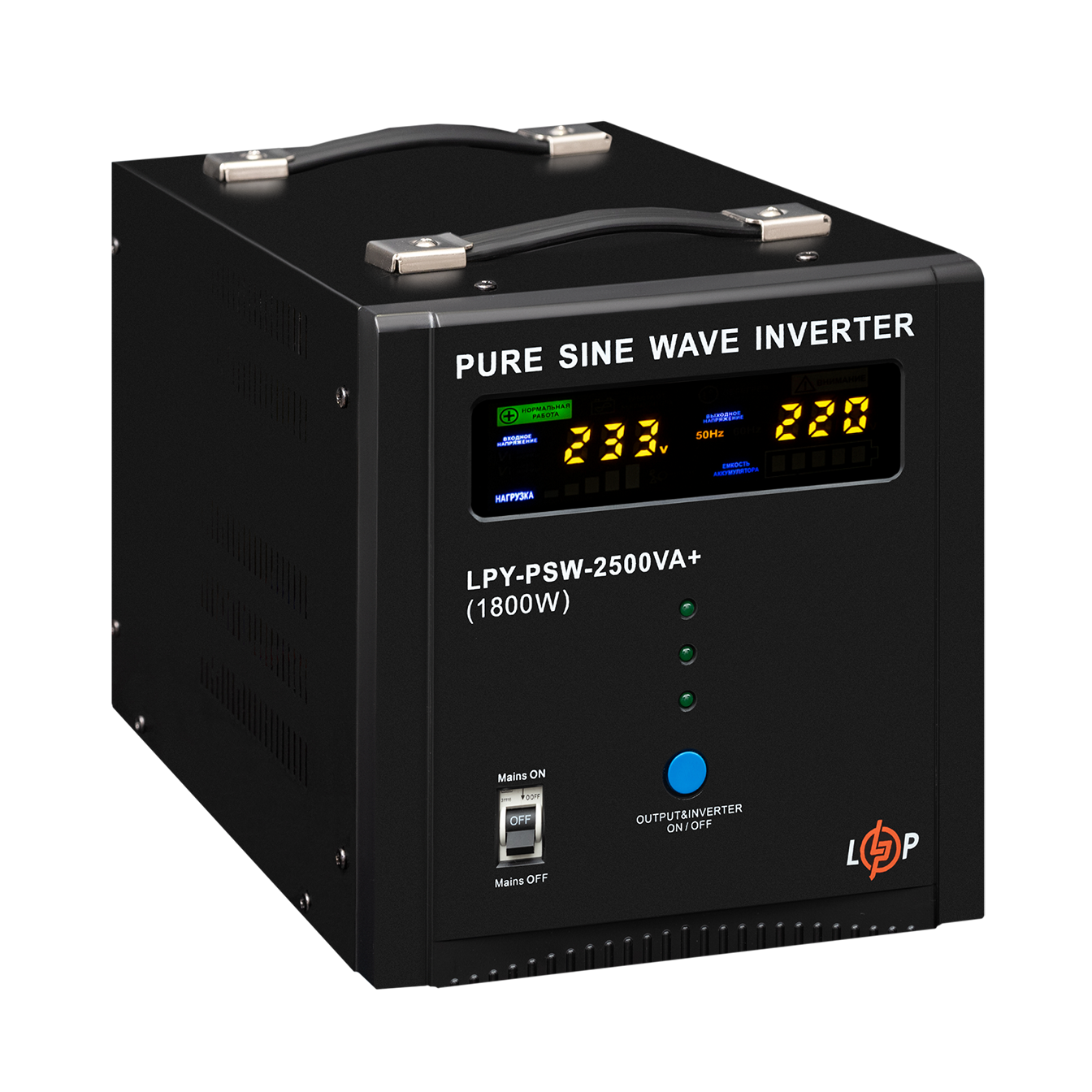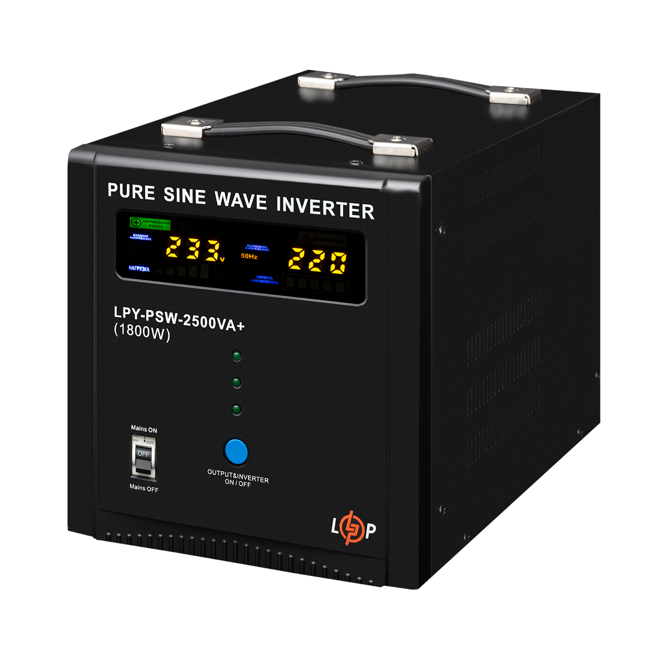ДБЖ з правильною синусоїдою LPY-W-PSW-2500VA+ (1800Вт) 10A/20A має потужність 2500/1800 Вт.