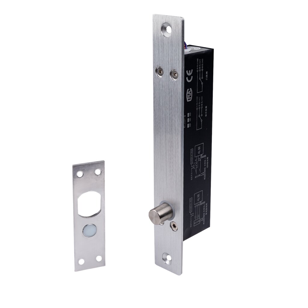 Тип роботи замку – нормально-відкритий (NO), коли ригель засувається за відсутності електричної напруги. Довжина ригеля – 15,5 мм. Матеріал виготовлення – сталь.