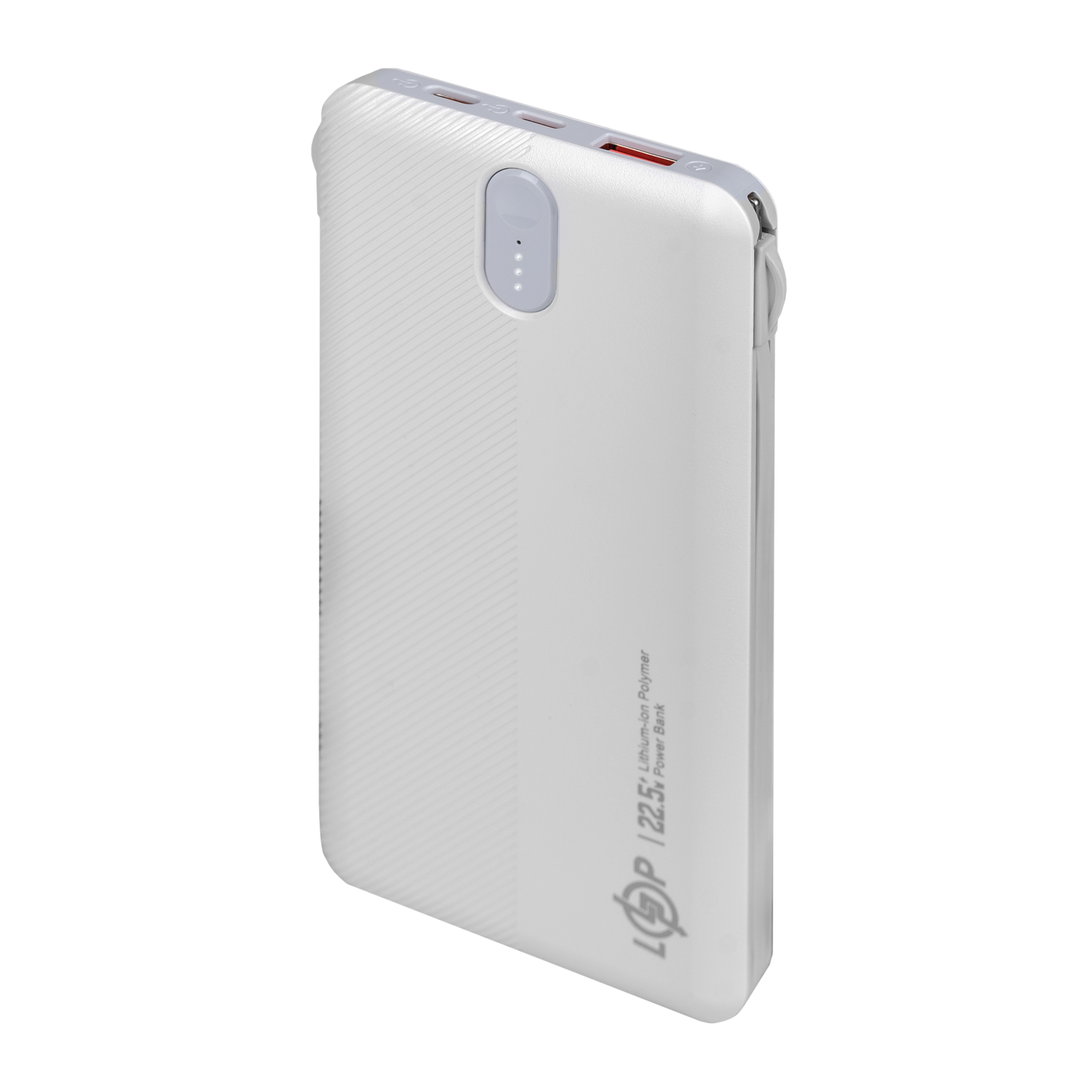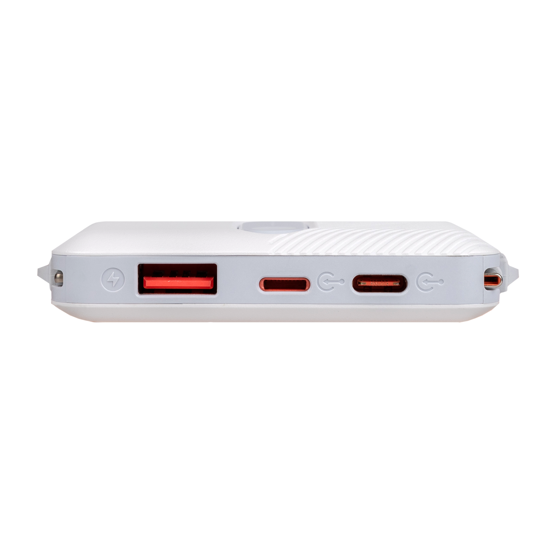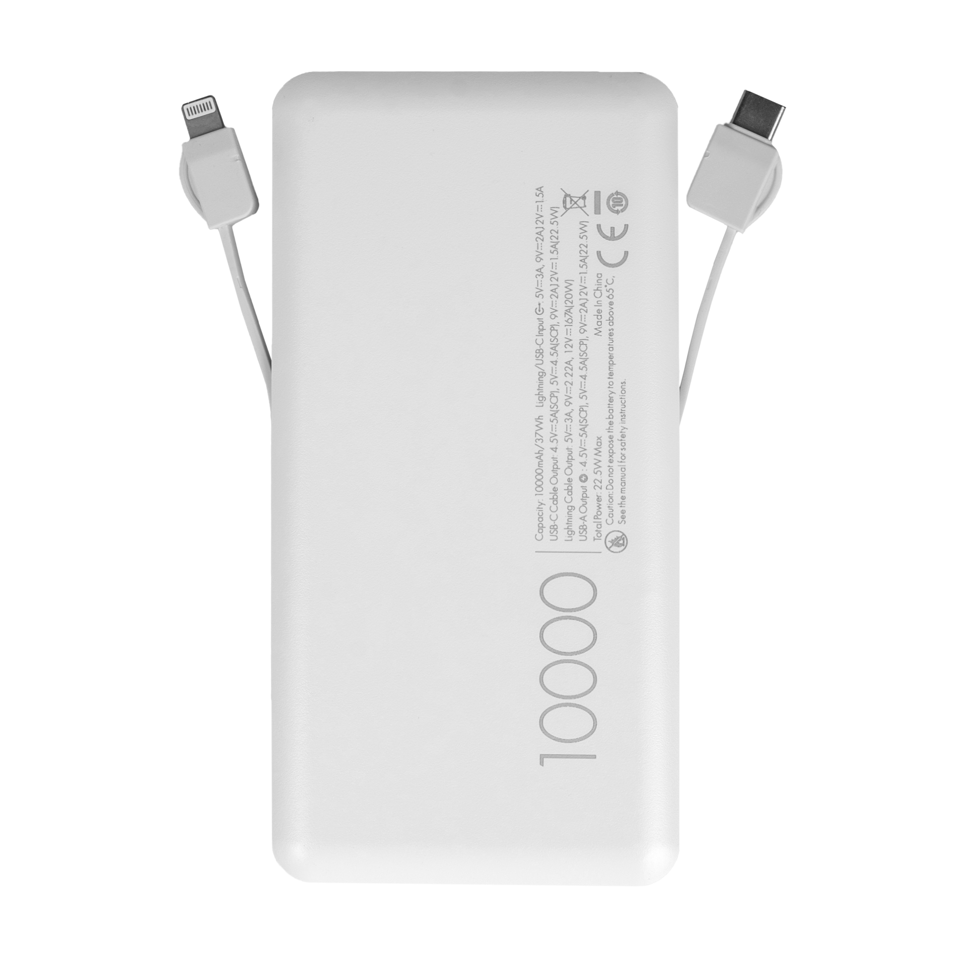 Power Bank оснащений вбудованим зарядним кабелем, сумісним з різними типами пристроїв: Type-C, Micro і Lightning. Це означає, що вам не потрібно турбуватися про наявність додаткових дротів – все необхідне знаходиться під рукою.
