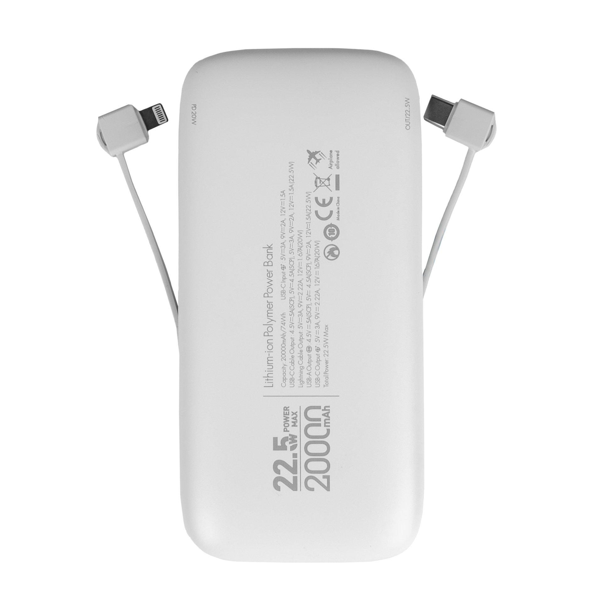 Power Bank оснащений вбудованим зарядним кабелем. Це означає, що вам не потрібно турбуватися про наявність додаткових проводів – все необхідне знаходиться під рукою.