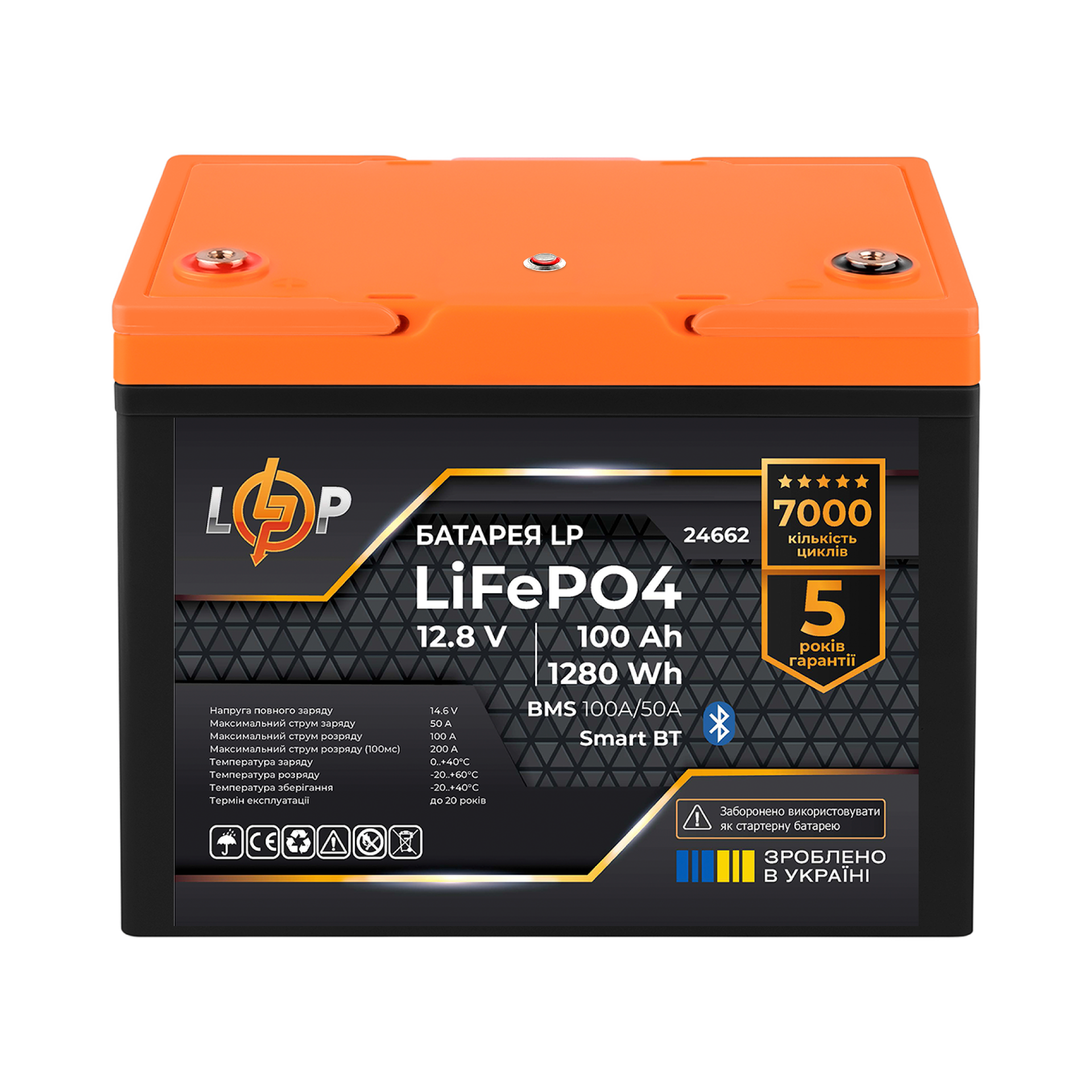Акумулятор LP LiFePO4 12,8V – 100 Ah (1280Wh) (BMS 100A/50А) пластик Smart BT – 1 шт.