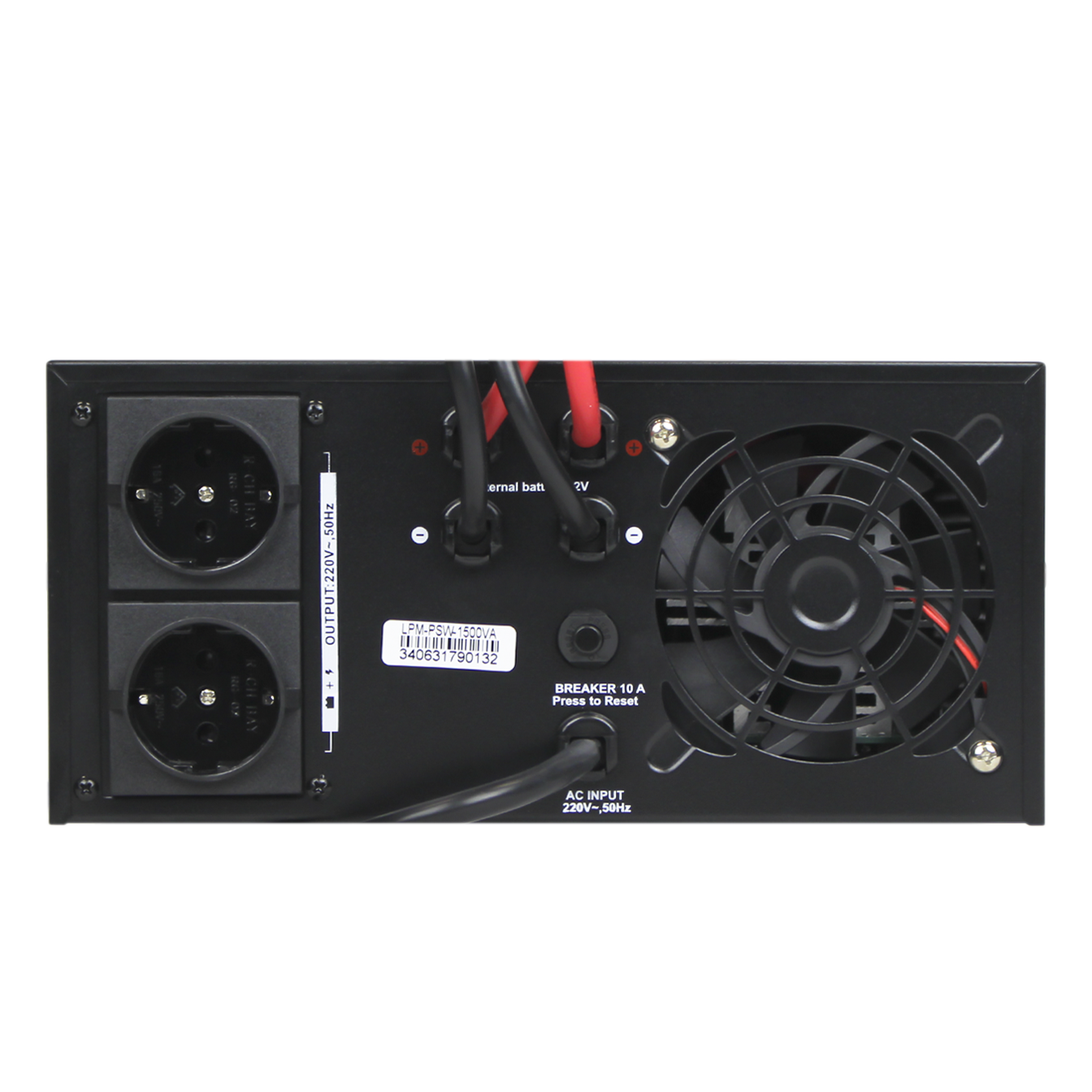 Джерело безперебійного живлення з правильною синусоїдою потужністю 1500/1050 VA/W виконує 2 основні функції: стабілізація напруги (на вході – 140-275, на виході – 220±10%V) та перетворення постійного струму від акумулятора на джерело змінної напруги 220V. UPS системи безперебійного живлення керується мікропроцесором. Акумулятор забезпечує подачу електроенергії в режимі резервного живлення.