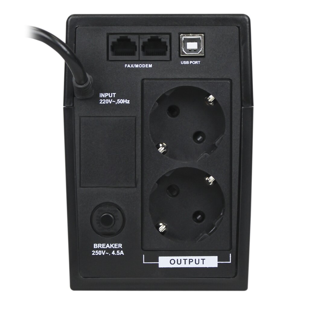 Джерело безперебійного живлення LPM-U650VA-Р – це лінійно-інтерактивний пристрій з апроксимованою синусоїдою. Виконує функції стабілізації напруги в мережі живлення електричним струмом і захисту від перевантажень або коротких замикань побутової, офісної або промислової техніки. Пристрій здатний забезпечувати автономну роботу приладів (під час відключення електроенергії) від акумуляторної батареї протягом 10-15 хвилин. Час перемикання в автономний режим – 4-6 мс. ДБЖ LPM-U650VA-Р рекомендується під”єднувати до телевізійного або звукового устаткування (у тому числі пристрої охоронного відеоспостереження), кухонної або побутової техніки, а так само до освітлювальних приладів. Споживана потужність – 650VA/390W. Пристрій працює в умовах вхідної напруги в мережі 145-290V. Величина вихідної напруги – 220V±10%. Частотний діапазон – 50/60 Hz. LPM-U650VA-Р підєднується до мережі за допомогою стандартної євровилки. Для підключення електричних приладів зовнішня сторона корпусу ДБЖ LPM-U650VA-Р обладнана двома євророзетками. Інтерфейс підключення до персонального комп”ютера – USB. Матеріал виготовлення корпусу – високоякісний пластик. Колір корпусу – чорний. Із зовнішнього боку корпусу, крім вилки та розеток, розташована світлова LCD індикація, яка показує в якому режимі працює LPM-U650VA-Р (від мережі або від акумулятора). Габаритні розміри – 310х90х145 мм. Вага – 4.3 кг.