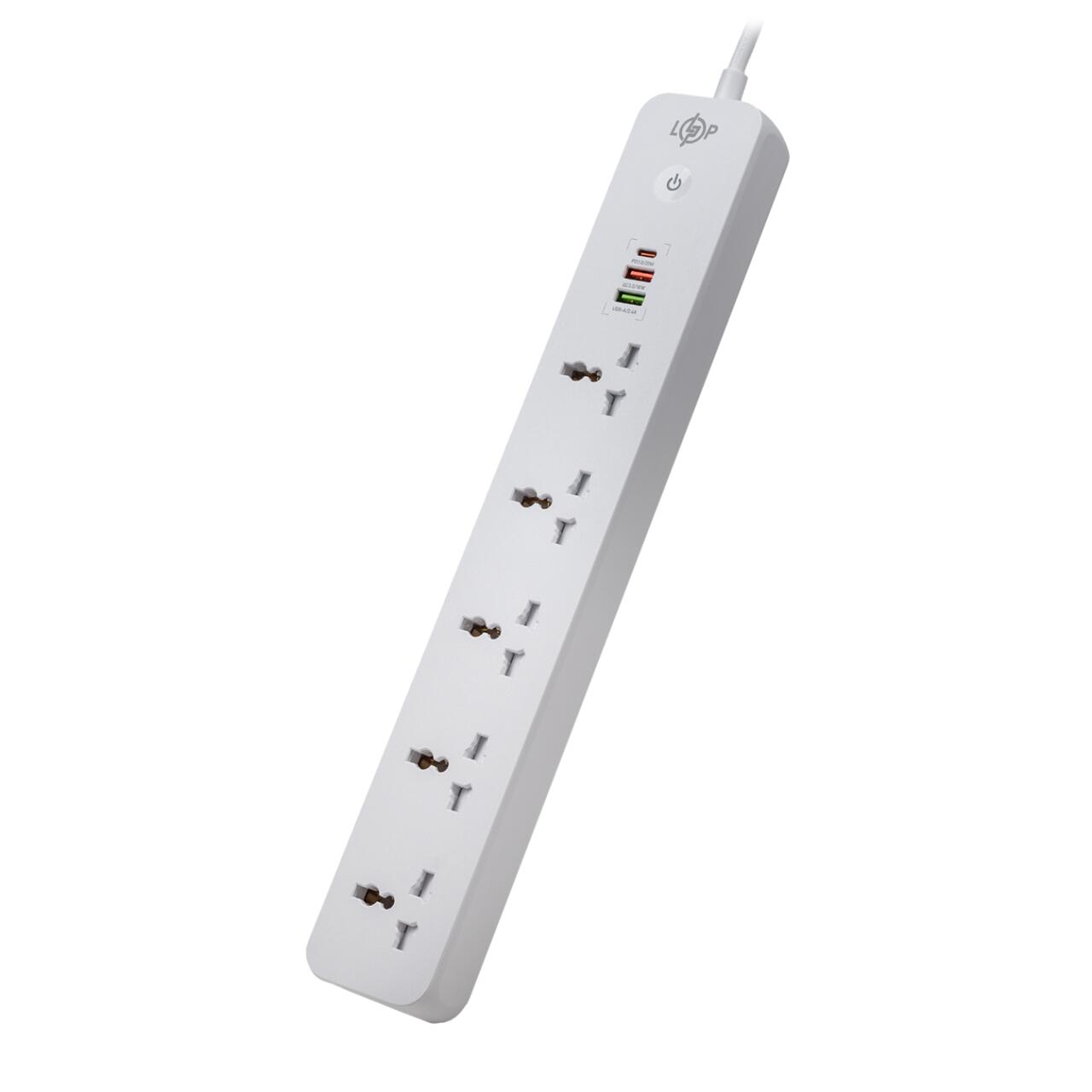 Мережевий фільтр (подовжувач) LP (5x230V-2500W, 1xUSB-38W/PD/QC3.0, 1xType-C 20W, 1xUSB 18W)