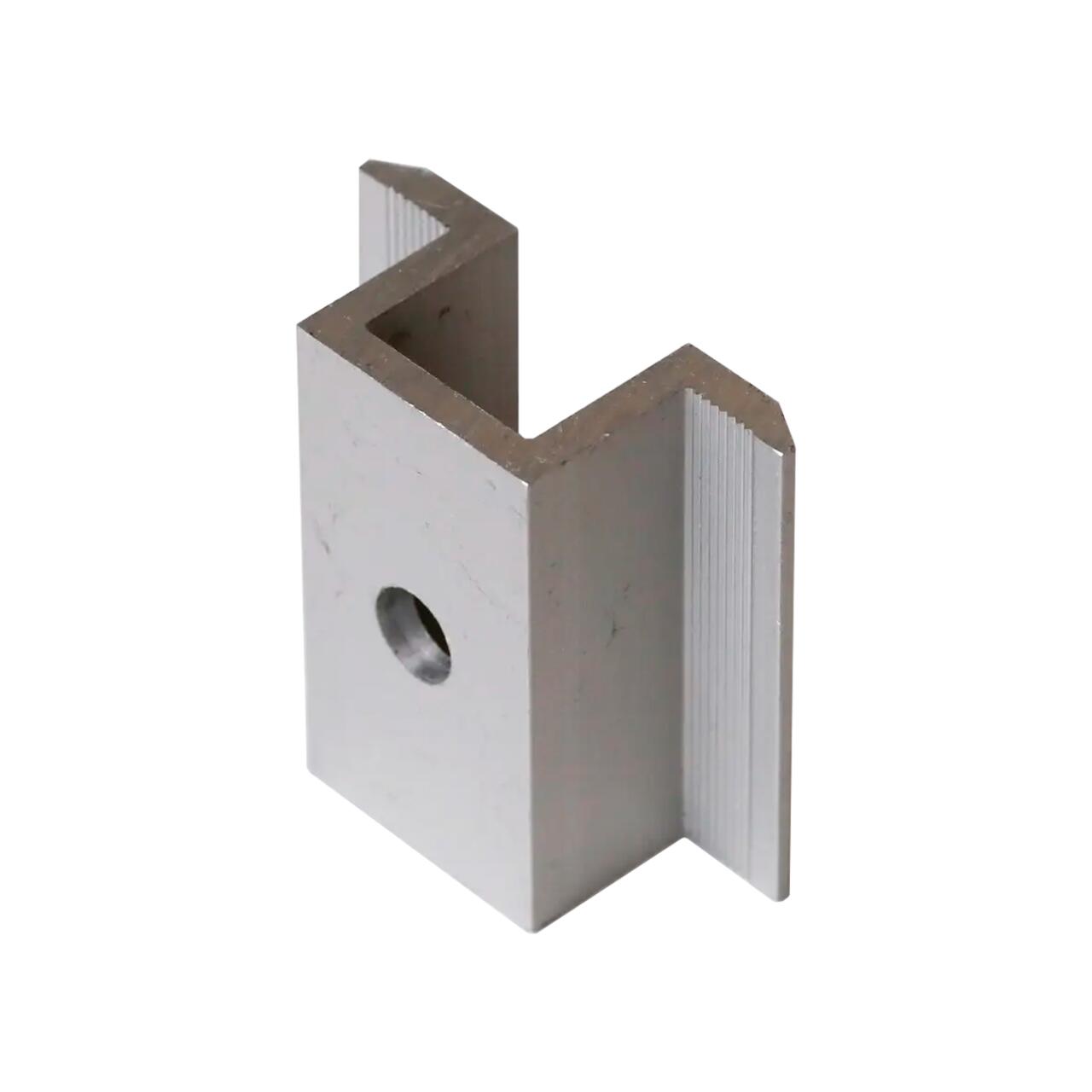 Міжмодульний притиск – незамінна деталь у процесі монтажу сонячних панелей. Він надійно фіксує панель, робить її стійкішою до агресивного впливу навколишнього середовища. У процесі його виробництва використовувався лише міцний та надійний алюміній. Завдяки цьому притиск відрізняється чудовими експлуатаційними характеристиками та тривалим терміном служби. Відмінною особливістю даного притиску є те, що він не покривається корозією та іржею, тому здатний прослужити максимально тривалий експлуатаційний термін. Алюміній, що використовується в процесі виробництва, має невелику вагу, тому виріб відрізняється компактними розмірами. У процесі кріплення даного елемента вам не знадобляться спеціальні навички чи вміння, чи додатковий спеціальний інструмент.