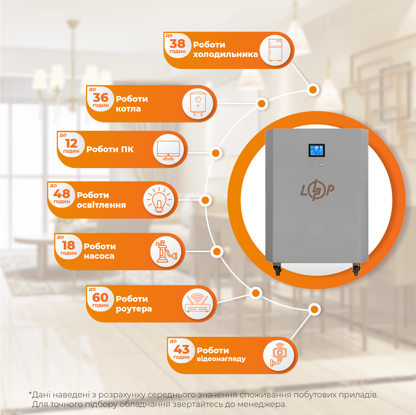 Для автономного живлення побутової та офісної техніки в LP Autonomic використовуються сучасні літій-залізо-фосфатні акумулятори (LiFePo4). Термін служби батареї LiFePo4 – до 15 років. Такі акумулятори стійкі до глибокого розряду та справляються з різкими перепадами температур. Це гарантує надійність та тривалий термін служби систем резервного живлення LogicPower, роблячи їх чудовим вибором для забезпечення надійного електроживлення у разі вимкнення електроенергії.
