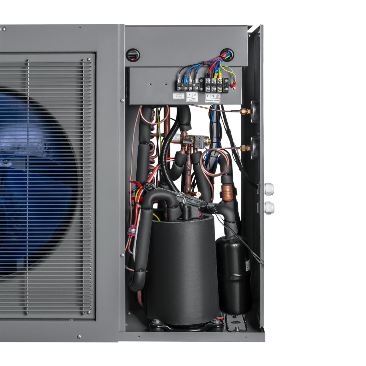 Спліт інверторний тепловий насос LP SINV-15 складається з двох блоків: внутрішнього модуля (гідромодуля) та зовнішнього блоку, що забезпечує температурний обмін із зовнішнім повітрям.