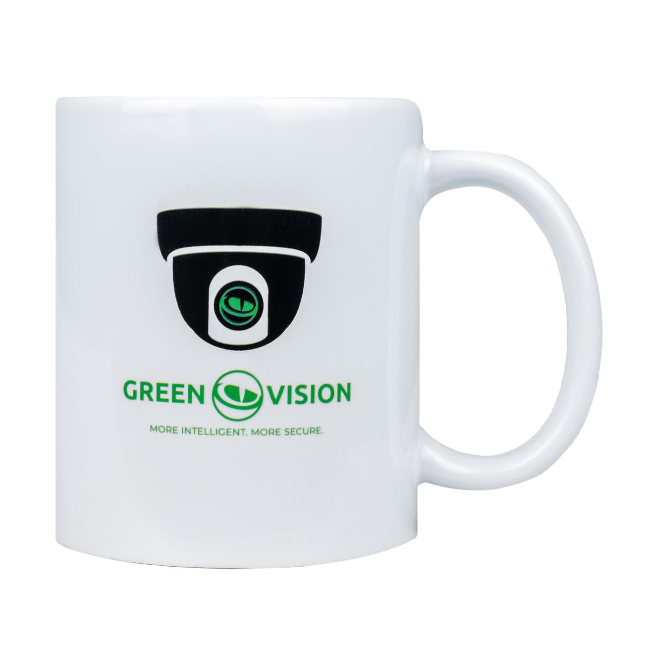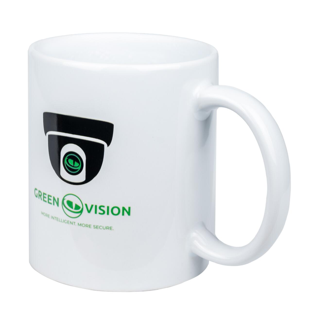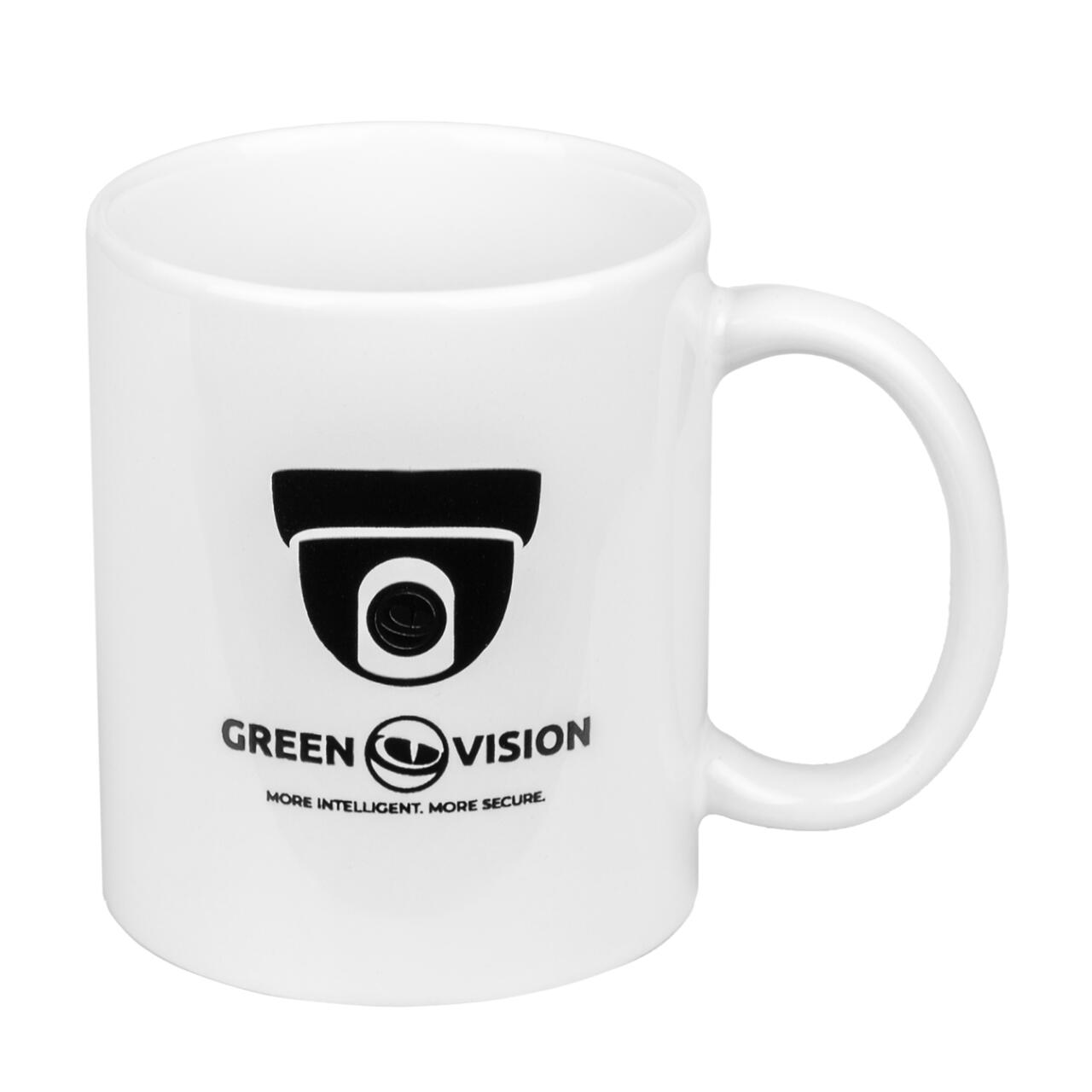 Чашка для кави або чаю, оформлена в неповторному стилі GreenVision, нагадає про те, що ваша безпека перебуває під надійним контролем.