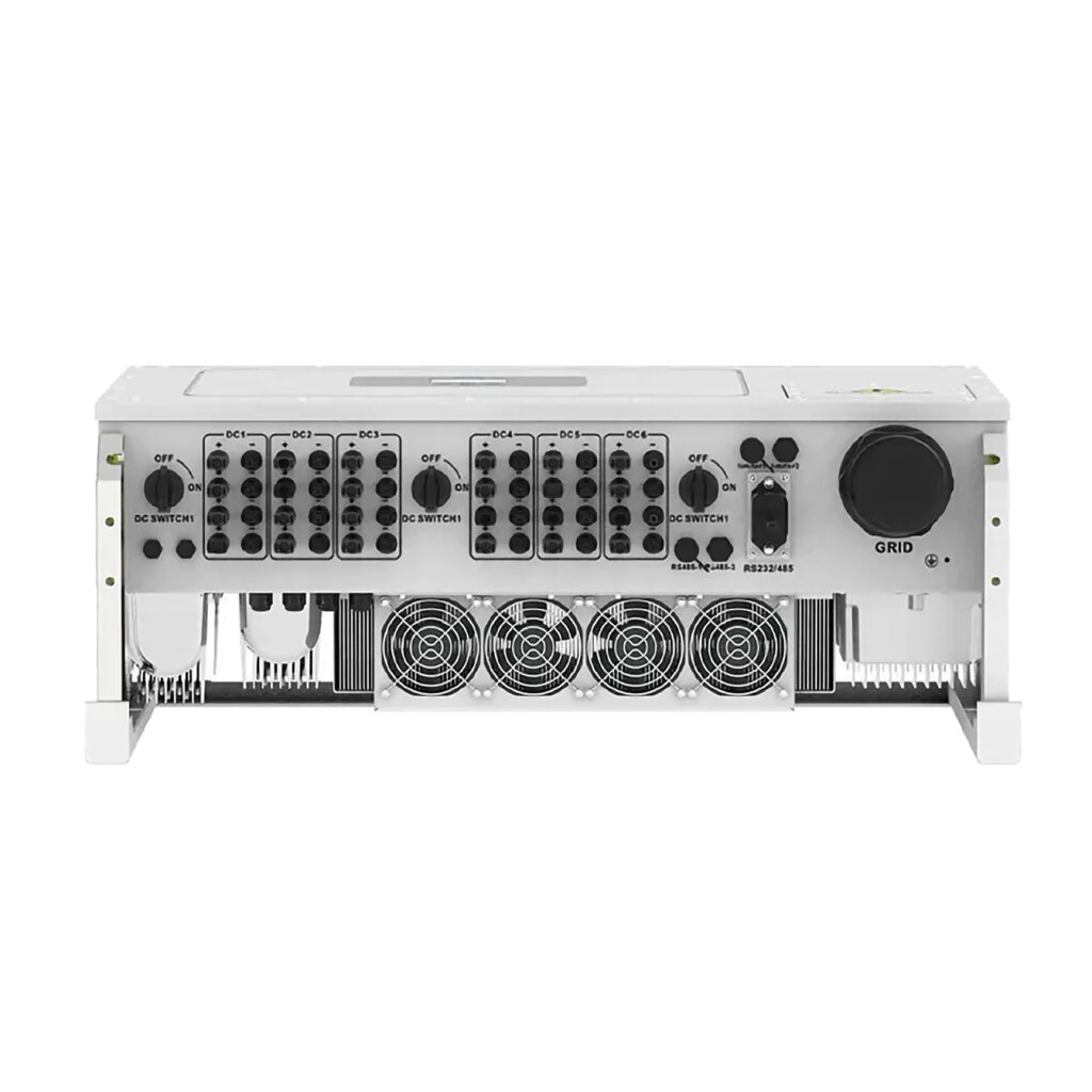 Інвертор для сонячних батарей перетворює постійний струм, згенерований фотомодулями (діапазон напруг 300-800 В), у вихідну напругу змінного струму 380В. Два високошвидкісних МППТ трекери працюють з використанням новітньої технології ідентифікації зміни потужності (найвищий клас точності вимірювання показників).