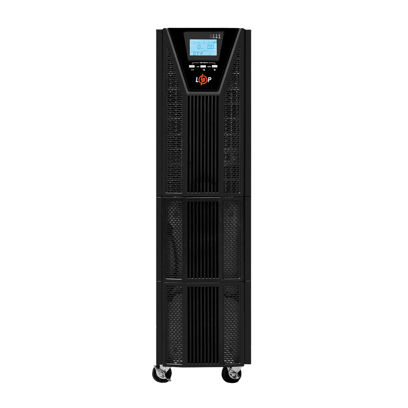Корпус Smart-UPS LogicPower 10000 PRO (with battery) виготовлений з металевого сплаву. На передній панелі розташований LCD екран для контролю параметрів роботи пристрою.