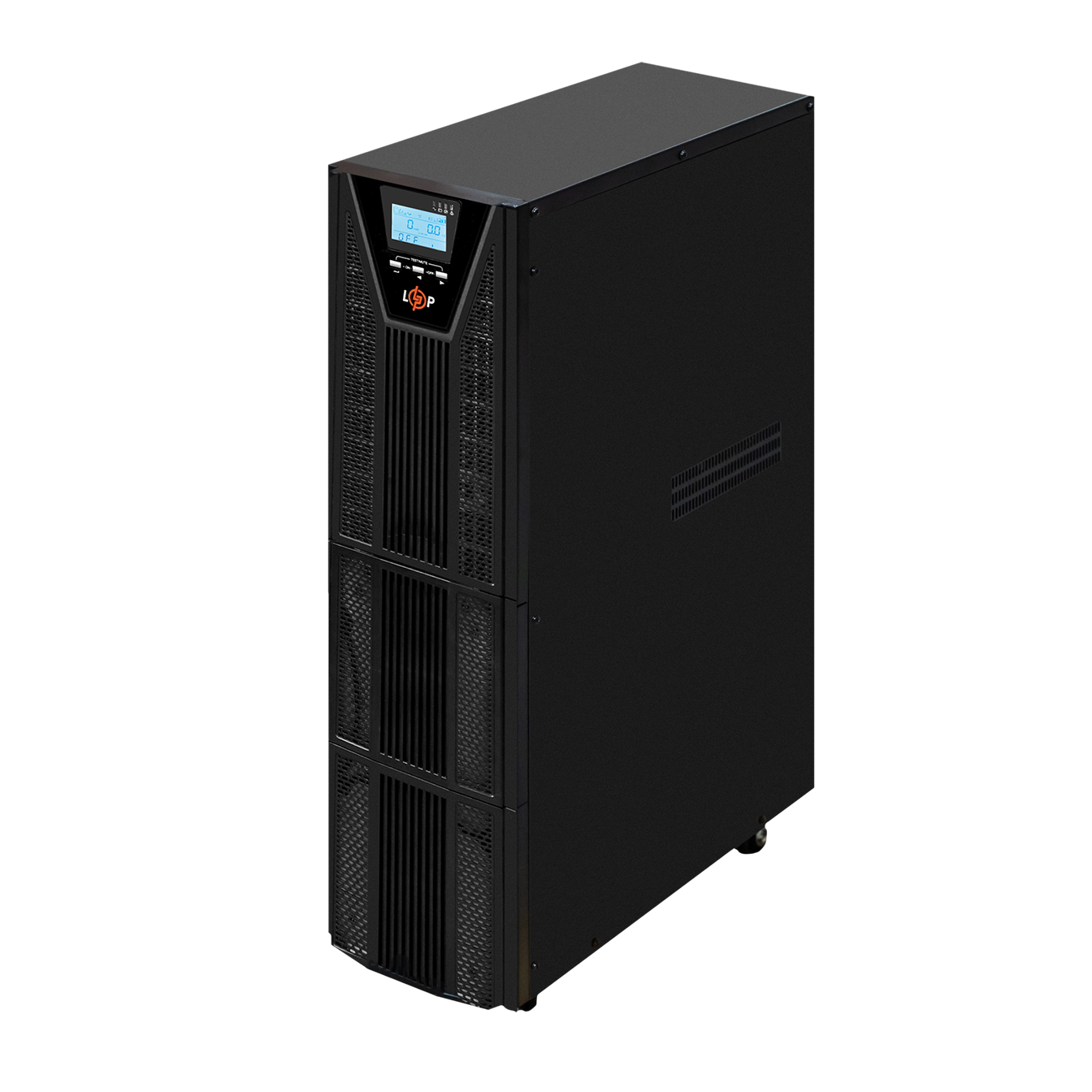 Корпус Smart-UPS LogicPower 6000 PRO (with battery) виготовлений з металевого сплаву. На передній панелі розташований LCD екран для контролю параметрів роботи пристрою.